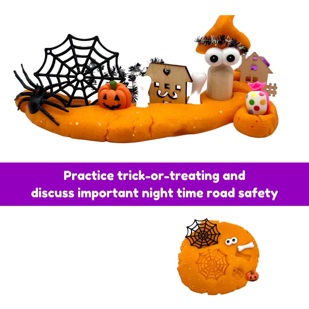- All-Natural Play Dough: Each kit includes one jars of essential oil cinnamon-scented, non-toxic play dough with the other half of the jar filled with spooky accessories.